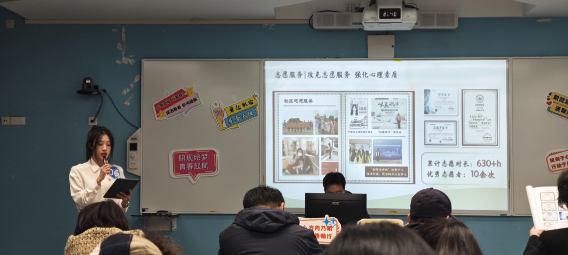 期间,学院积极组织学生参加大学生职业规划大赛,并邀请专业老师现场进行技巧讲解、经验分享,学院参赛率居全校第,吴洋羊和马嘉一分别获得校大学生职业生涯规划大赛就业赛道二等奖和三等奖的优异成绩。这两位同学的成功不仅展示了们个人的才华和努力,也体现了学院在就业指导方面的成效,激励了更多的学生积极参与到职业规划的学习和实践中。