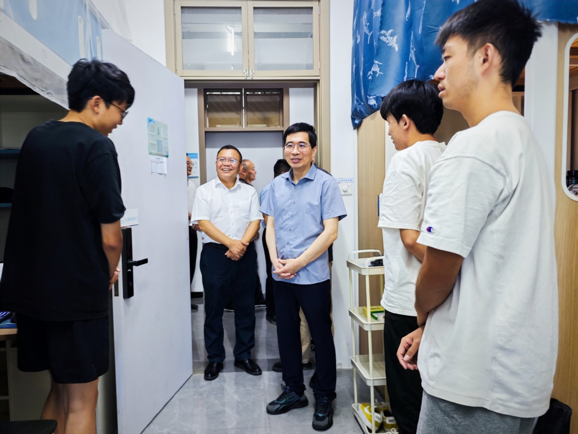 走访过程中,校领导与留校学生亲切交谈,询问学习生活情况,对同学们不惧酷暑投入复习备考、科研备赛给予充分肯定,嘱咐同学们注意防暑降温、劳逸结合和自身安全。