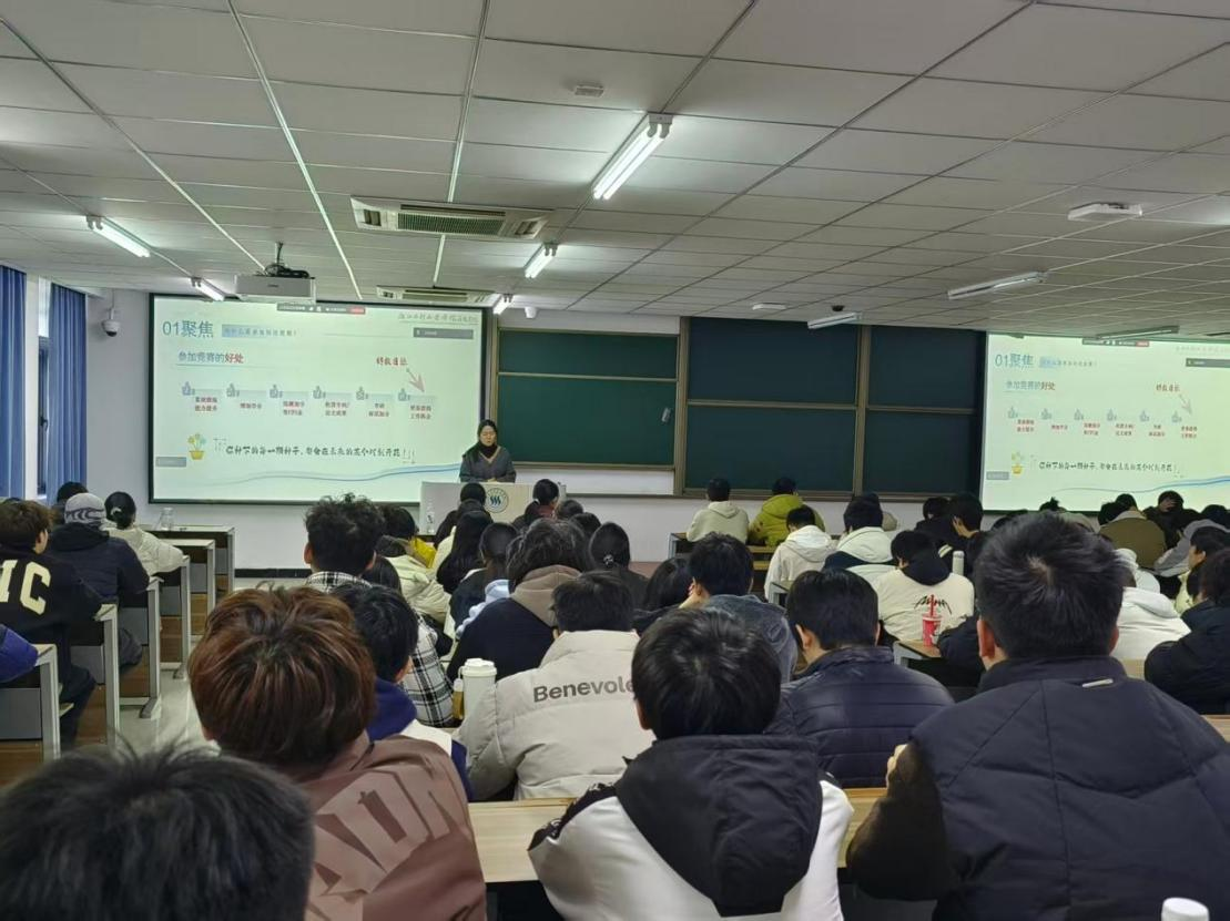 为深化学生对学科竞赛的认识,激发同学们的参赛积极性,我院于12月3日在南浔校区举办线下宣讲会。本次会议邀请专任教师王子艳及大四学生代表胡嘉乐,结合各自经历,围绕参赛意义、赛事类别、报名流程、备赛经验等方面展开分享。