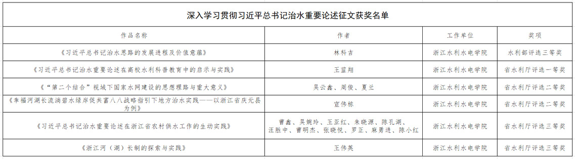 近日,由水利部文明办主办的深入学习贯彻习近平总书记治水重要论述征文活动公布评选结果,我院党总支副书记林科吉老师撰写的论文《习近平总书记治水思路的发展进程及价值意蕴》经过校级选拔,报送水利部参评,获三等奖。学校其他论文经省水利厅评审,共5篇论文获奖,其中,一等奖论文1篇,二等奖论文2篇,三等奖论文2篇。